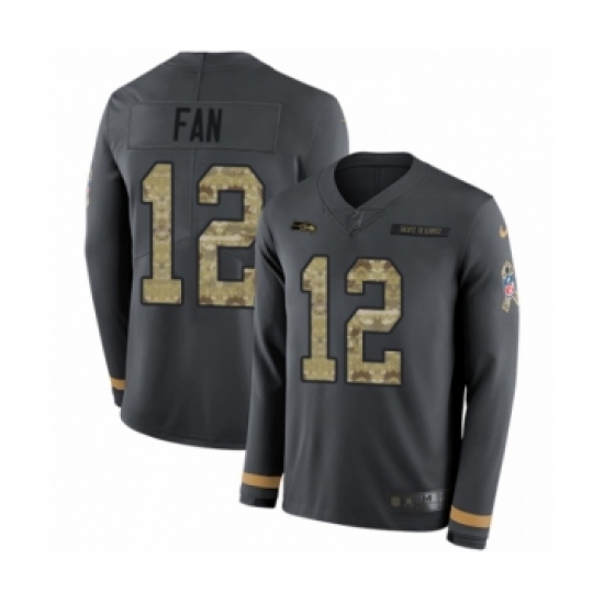 >Men's Nike Seattle Seahawks 12th Fan Limited Black Salute to Service Therma Long Sleeve NFL Jersey