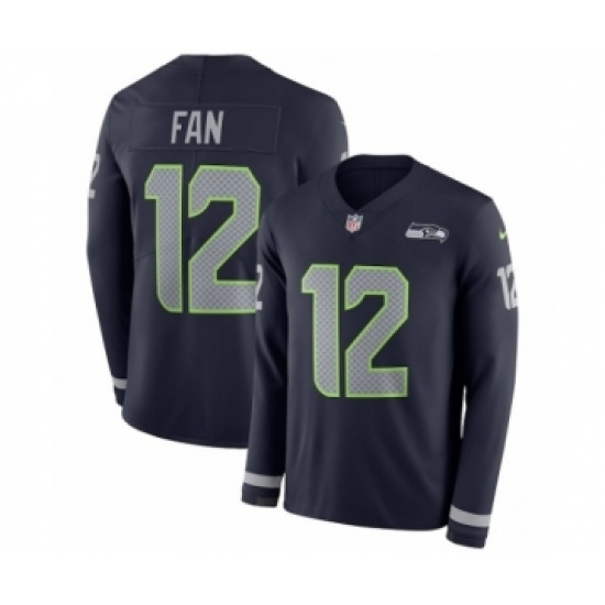 Men's Nike Seattle Seahawks 12th Fan Limited Navy Blue Therma Long Sleeve NFL Jersey
