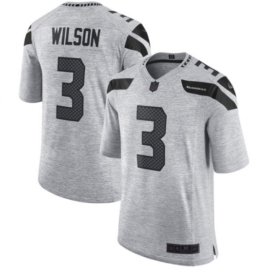 Men's Nike Seattle Seahawks #3 Russell Wilson Limited Gray Gridiron II NFL Jersey