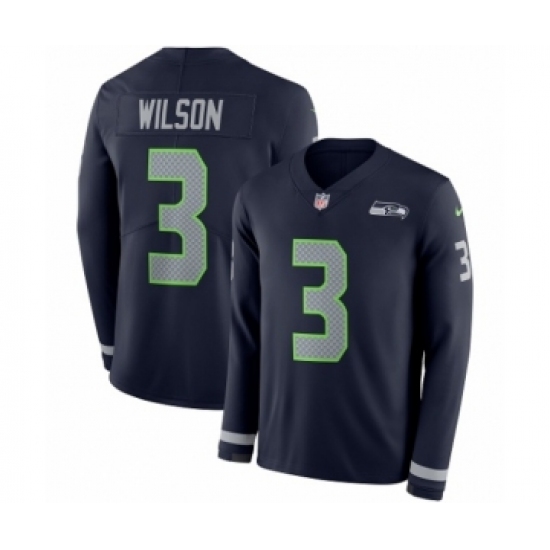 >Men's Nike Seattle Seahawks #3 Russell Wilson Limited Navy Blue Therma Long Sleeve NFL Jersey