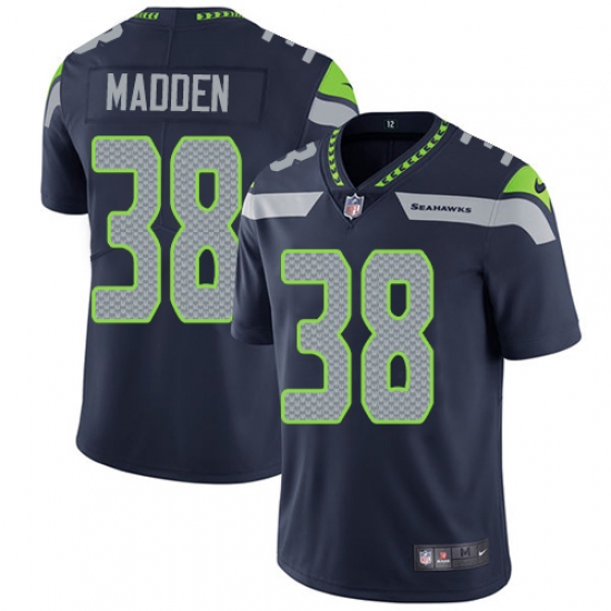 Home>NFL>Seattle Seahawks>Tre Madden>Men's Nike Seattle Seahawks #38 Tre Madden Navy Blue Team Color Vapor Untouchable Limited Player NFL Jersey