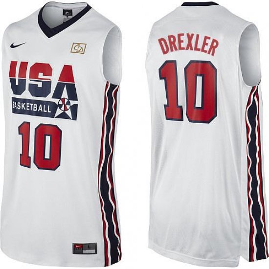 Men's Nike Team USA #10 Clyde Drexler Authentic White 2012 Olympic Retro Basketball Jersey