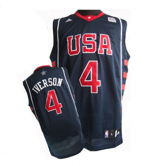 Men's Nike Team USA #4 Allen Iverson Swingman Navy Blue Summer Olympics Basketball Jersey