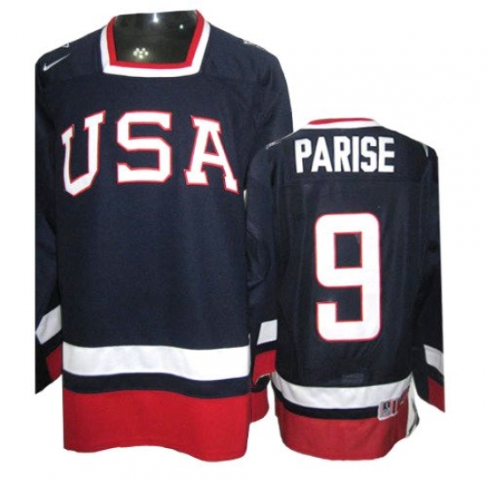 Men's Nike Team USA #9 Zach Parise Authentic Navy Blue 2010 Olympic Hockey Jersey