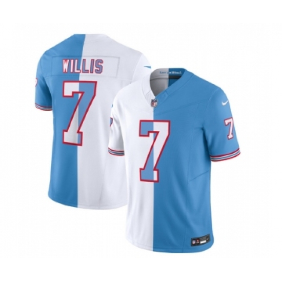 Home>NFL>Tennessee Titans>Malik Willis>Men's Nike Tennessee Titans #7 Malik Willis White Blue 2023 F.U.S.E. Split Vapor Limited Throwback Football Stitched Jersey