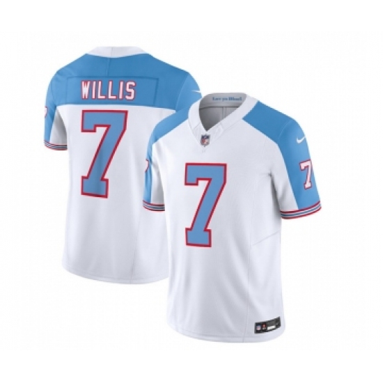 Men's Nike Tennessee Titans #7 Malik Willis White Blue 2023 F.U.S.E. Vapor Limited Throwback Football Stitched Jersey