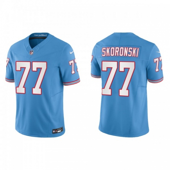 Men's Nike Tennessee Titans #77 Peter Skoronski Light Blue 2023 F.U.S.E. Vapor Limited Throwback Stitched Football Jersey
