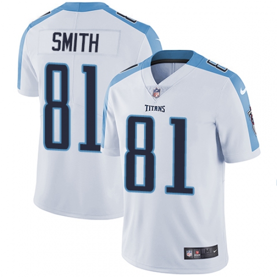 Home>NFL>Tennessee Titans>Jonnu Smith>Men's Nike Tennessee Titans #81 Jonnu Smith White Vapor Untouchable Limited Player NFL Jersey