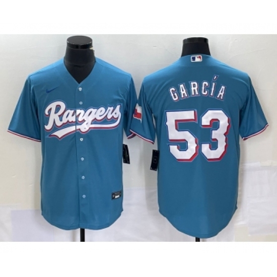 Men's Nike Texas Rangers #53 Adolis Garcia Light Blue Cool Base Stitched Baseball Jersey
