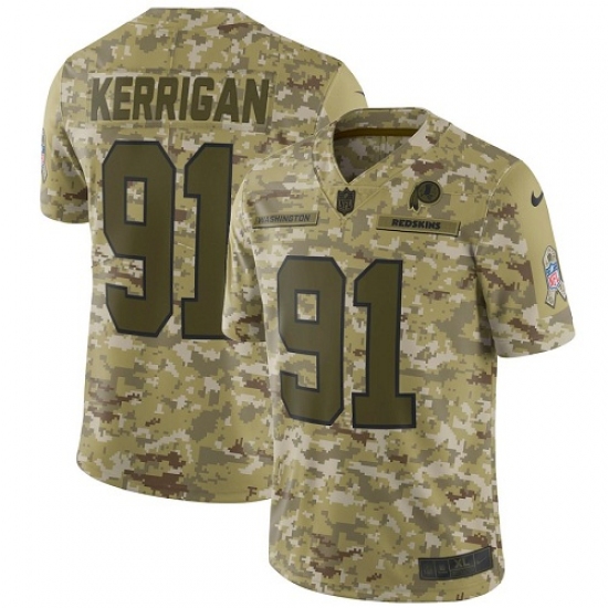 >Men's Nike Washington Redskins #91 Ryan Kerrigan Burgundy Limited Camo 2018 Salute to Service NFL Jersey