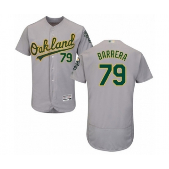 Men's Oakland Athletics #79 Luis Barrera Grey Road Flex Base Authentic Collection Baseball Player Jersey