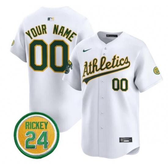 Men's Oakland Athletics Active Player Custom White Rickey Henderson Patch Vapor Premier Limited Stitched Baseball Jersey