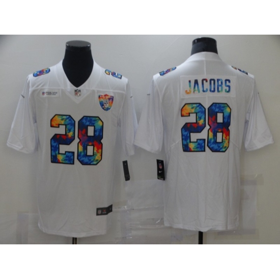 >Men's Oakland Raiders #28 Josh Jacobs White Rainbow Version Nike Leopard Jersey