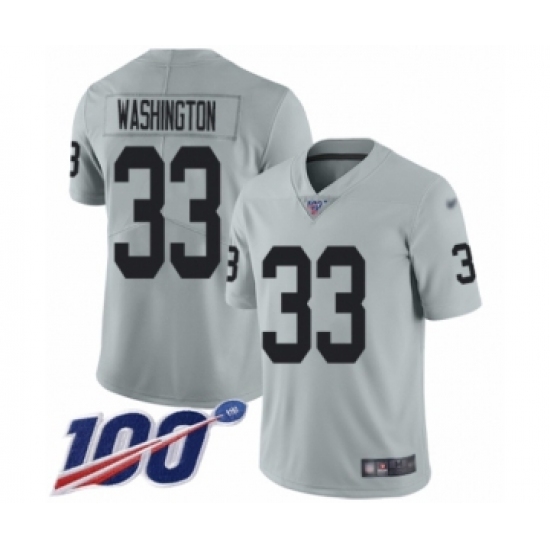 >Men's Oakland Raiders #33 DeAndre Washington Limited Silver Inverted Legend 100th Season Football Jersey