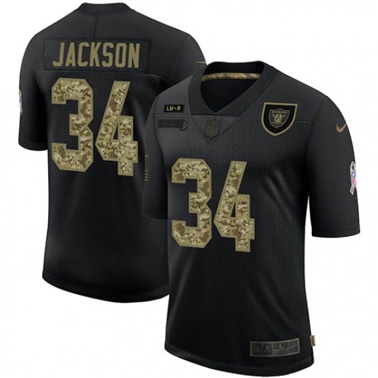 >Men's Oakland Raiders #34 Bo Jackson Camo 2020 Salute To Service Limited Jersey