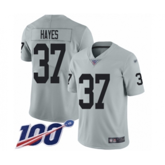 >Men's Oakland Raiders #37 Lester Hayes Limited Silver Inverted Legend 100th Season Football Jersey