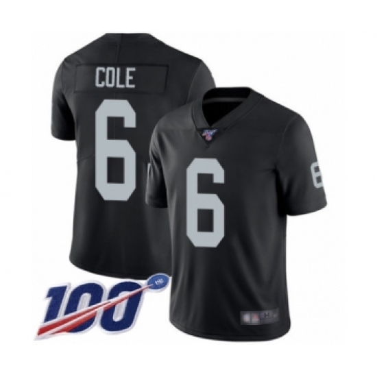 Men's Oakland Raiders #6 A.J. Cole Black Team Color Vapor Untouchable Limited Player 100th Season Football Jersey