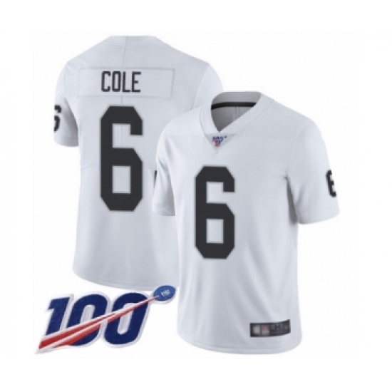 Men's Oakland Raiders #6 A.J. Cole White Vapor Untouchable Limited Player 100th Season Football Jersey