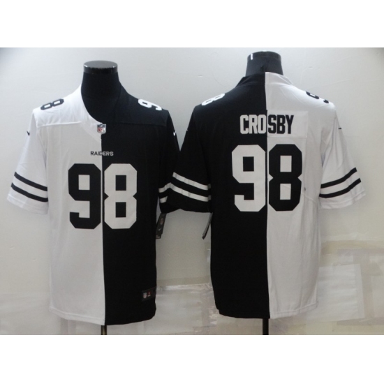 >Men's Oakland Raiders #98 Maxx Crosby Black White Limited Split Fashion Football Jersey