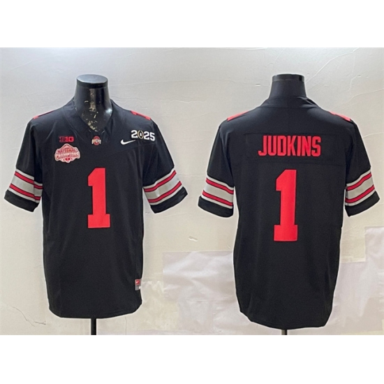 Men's Ohio State Buckeyes #1 Quinshon Judkins Black 2025 CFP Final With National Champions F.U.S.E. Vapor Limited Stitched Football Jersey
