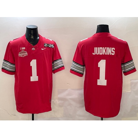 Men's Ohio State Buckeyes #1 Quinshon Judkins Red 2025 CFP Final With National Champions F.U.S.E. Vapor Limited Stitched Football Jersey