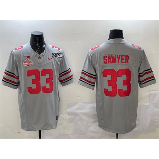 Men's Ohio State Buckeyes #33 Jack Sawyer Grey 2025 CFP Final With National Champions F.U.S.E. Vapor Limited Stitched Football Jersey