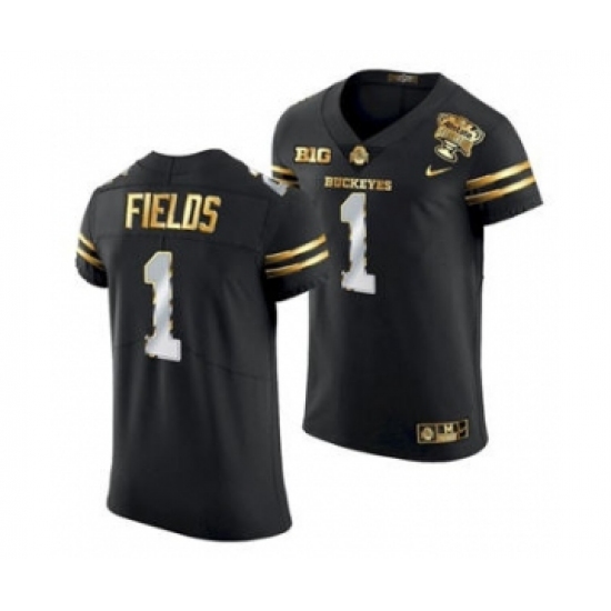 >Men's Ohio State Buckeyes Justin Fields 2021 Sugar Bowl Jersey Black Gold