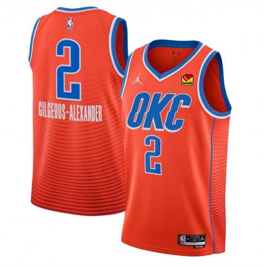 Men's Oklahoma City Thunder #2 Shai Gilgeous-Alexander Orange Statement Edition Stitched Basketball Jersey