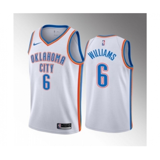 >Men's Oklahoma City Thunder #6 Jaylin Williams White Association Edition Stitched Basketball Jersey