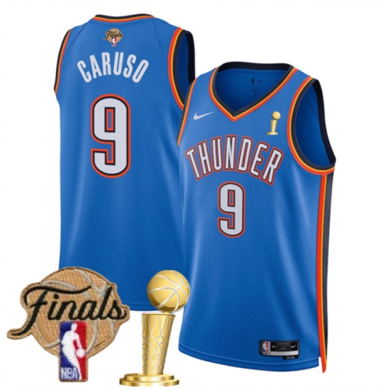 >Men's Oklahoma City Thunder #9 Alex Caruso Blue 2025 Finals And Finals Champions Icon Edition Stitched Basketball Jersey