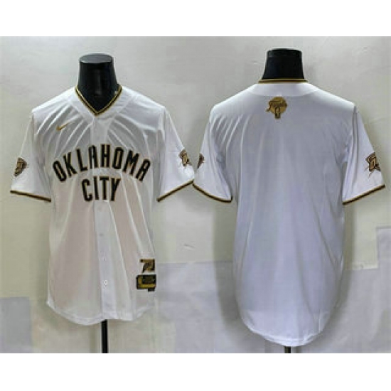 Men's Oklahoma City Thunder Blank White Gold 2025 Finals Vapor Stitched Baseball Jersey