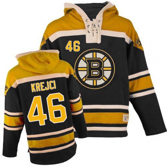 Men's Old Time Hockey Boston Bruins #46 David Krejci Authentic Black Sawyer Hooded Sweatshirt NHL Jersey