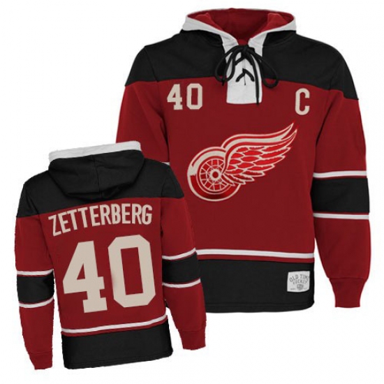 Men's Old Time Hockey Detroit Red Wings #40 Henrik Zetterberg Authentic Red Sawyer Hooded Sweatshirt NHL Jersey