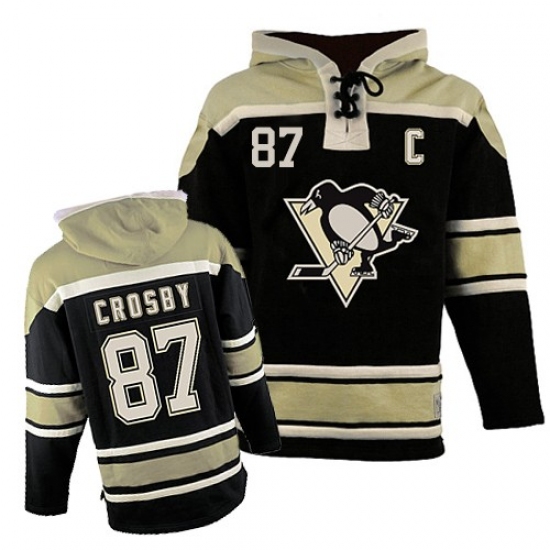 Home>NHL>Pittsburgh Penguins>Sidney Crosby>Men's Old Time Hockey Pittsburgh Penguins #87 Sidney Crosby Authentic Black Sawyer Hooded Sweatshirt NHL Jersey