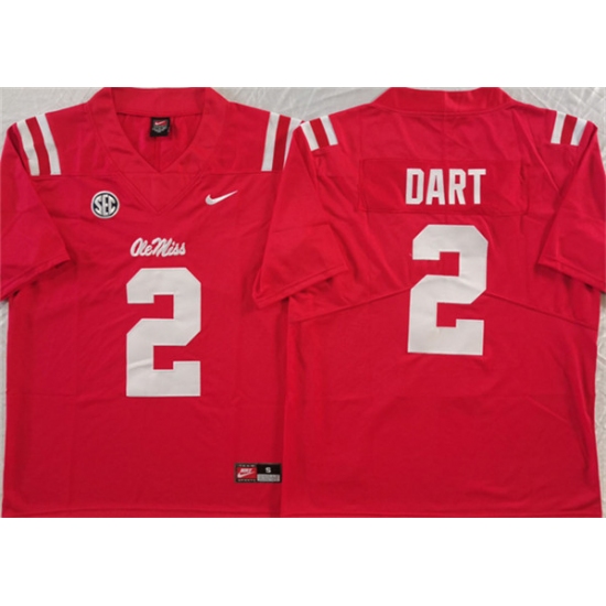 Men's Ole Miss Rebels #2 Jaxson Dart Red Stitched jersey