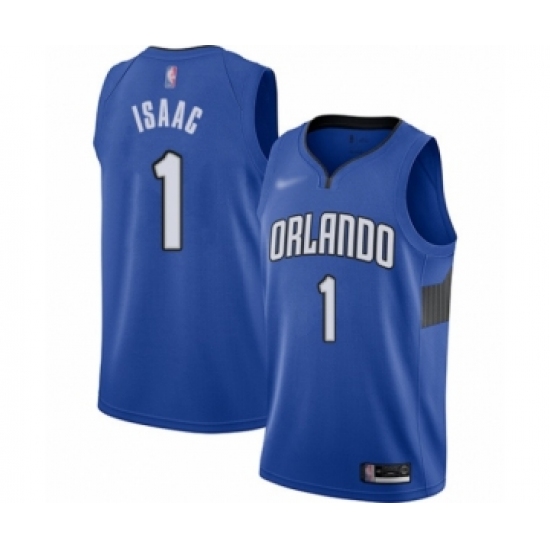 >Men's Orlando Magic #1 Jonathan Isaac Authentic Blue Finished Basketball Jersey - Statement Edition
