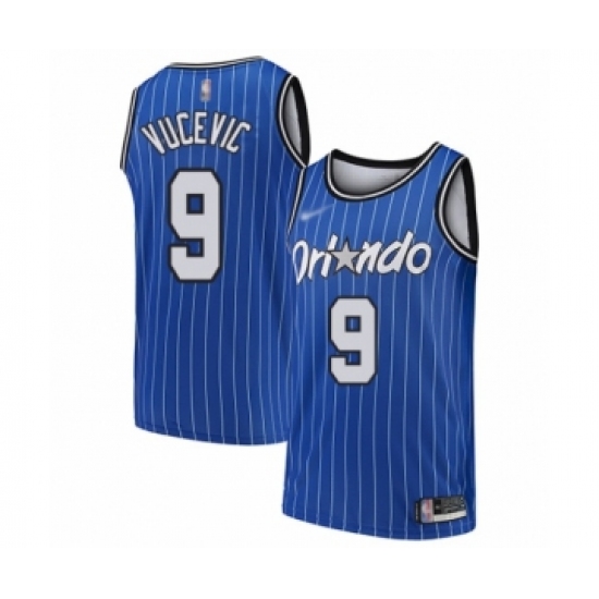 >Men's Orlando Magic #9 Nikola Vucevic Authentic Blue Hardwood Classics Basketball Jersey