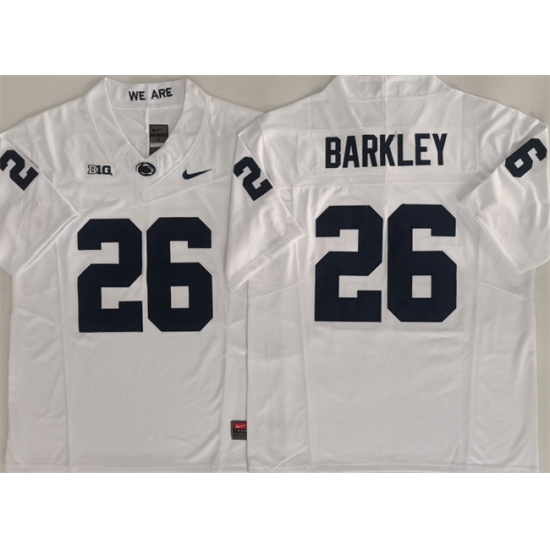 >Men's Penn State Nittany Lions #26 Saquon Barkley White 2024 F.U.S.E. Stitched Jersey
