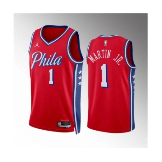Men's Philadelphia 76ers #1 Kenyon Martin Jr Red Statement Edition Stitched Jersey