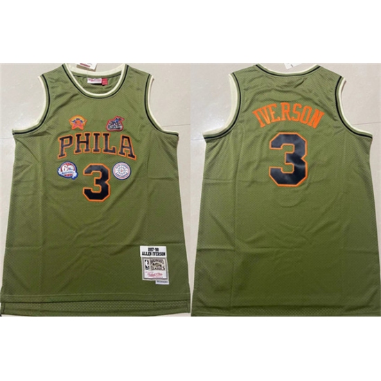 >Men's Philadelphia 76ers #3 Allen Iverson Green 1997-98 Throwback Stitched basketball Jersey