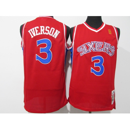 Men's Philadelphia 76ers #3 Allen Iverson Red Throwback 96-97 Basketbal Jersey
