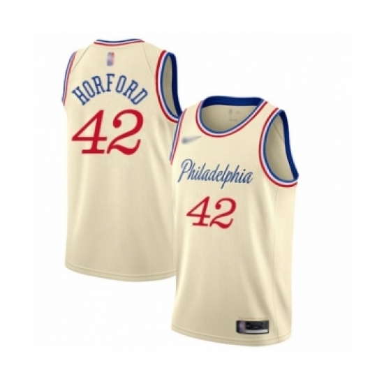 >Men's Philadelphia 76ers #42 Al Horford Swingman Cream Basketball Jersey - 2019 20 City Edition