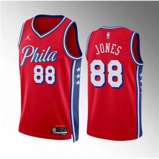 >Men's Philadelphia 76ers #88 Kai Jones Red Statement Edition Stitched Jersey