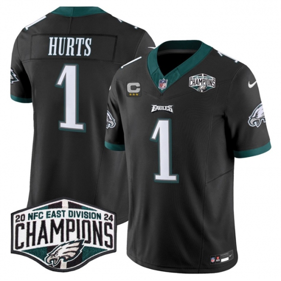 Men's Philadelphia Eagles #1 Jalen Hurts Black 2024 NFC East Champions With 3-Star C F.U.S.E. Vapor Untouchable Limited Stitched Football Jersey
