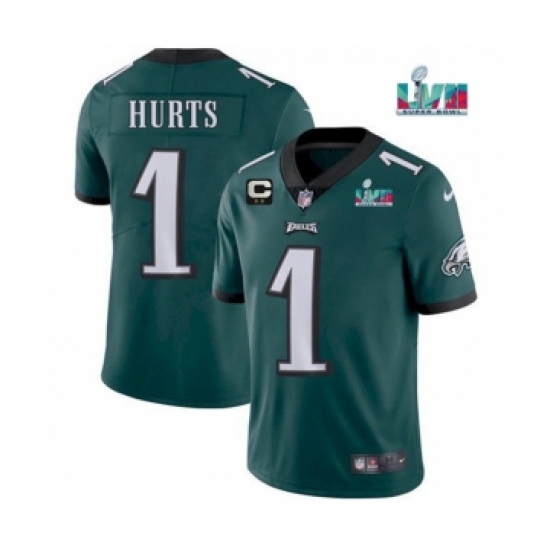 Men's Philadelphia Eagles #1 Jalen Hurts Green Super Bowl LVII And 2-star C Vapor Untouchable Limited Stitched Jersey
