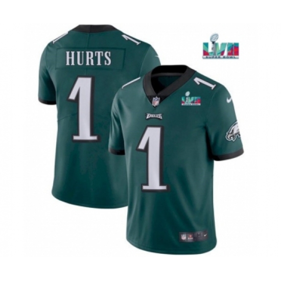 Men's Philadelphia Eagles #1 Jalen Hurts Green Super Bowl LVII Patch Vapor Untouchable Limited Stitched Jersey