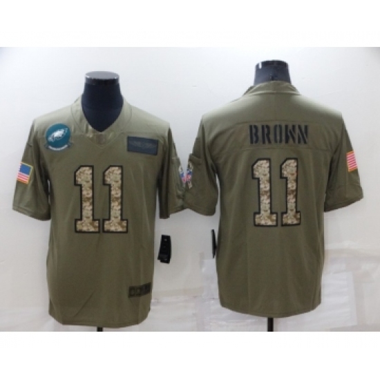 >Men's Philadelphia Eagles #11 A. J. Brown Olive Camo Salute To Service Limited Stitched Jersey
