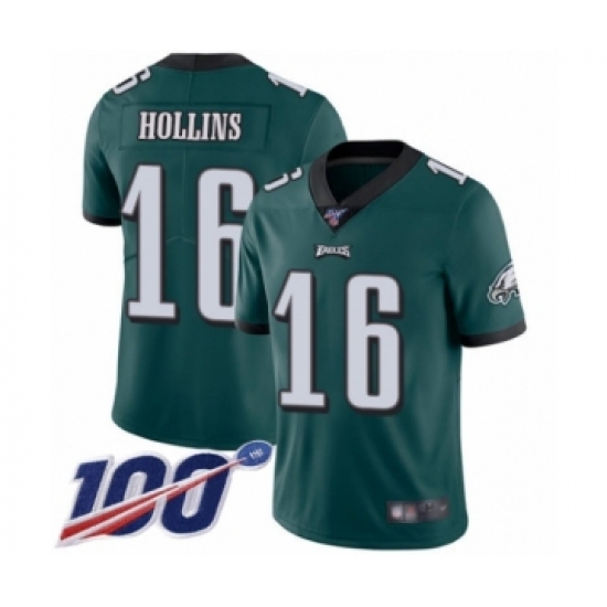 >Men's Philadelphia Eagles #16 Mack Hollins Midnight Green Team Color Vapor Untouchable Limited Player 100th Season Football Jersey