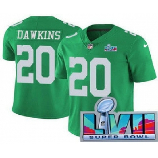 >Men's Philadelphia Eagles #20 Brian Dawkins Limited Green Rush Super Bowl LVII Vapor Jersey
