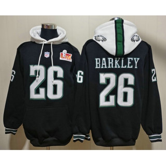 >Men's Philadelphia Eagles #26 Saquon Barkley Black Super Bowl LIX Pullover Hoodie